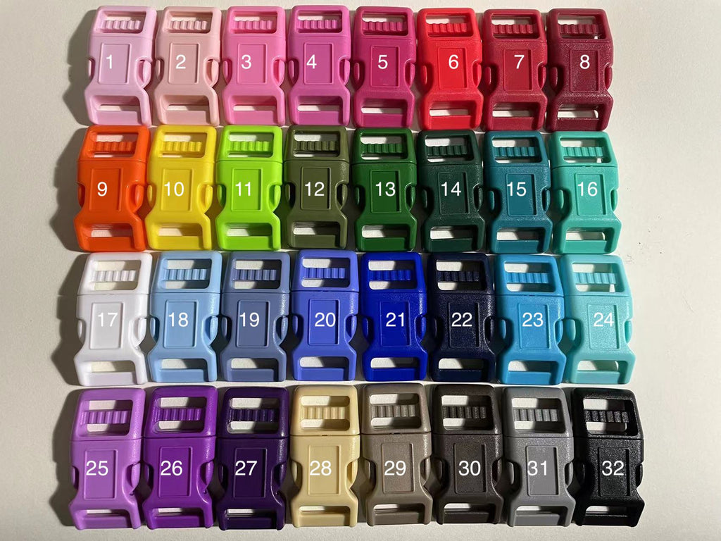Mixed Color Dog Collar Curved Buckle, Triglides, Dee, 3 Sizes